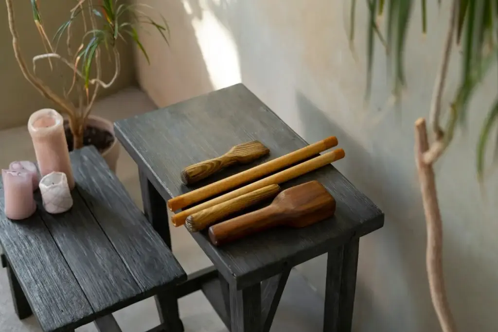 Viele Möbel kombinieren Holz mit Metall, Leder, Stein oder Textilien. Isoliere Kontaktflächen, nutze separates Werkzeug und wähle angepasste Mittel: pH-neutrale Reiniger für Leder, keine Säuren auf Naturstein, trockene Bürsten für Stoff. So bleibt jedes Material respektiert, und dein Pflegeergebnis wirkt harmonisch und dauerhaft.